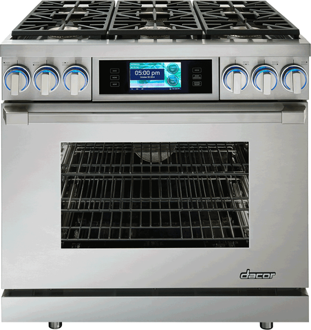 dacor dyrp36ds/lp/h 36 inch slide-in dual-fuel range oven with 5.2 cu. ft. oven