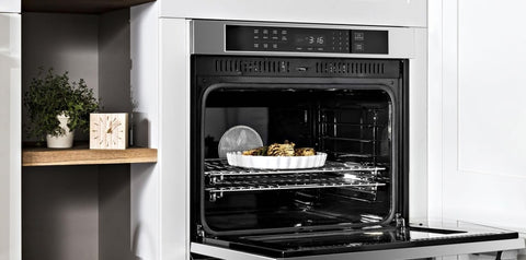 and 1 Chrome rack in each oven cell. GlideRacks fully extend out of the oven using a smooth gliding ball bearing system for moving heavier dishes in and out of the oven easily. GlideRacks and Chrome racks are equipped with a convenient handle in front for