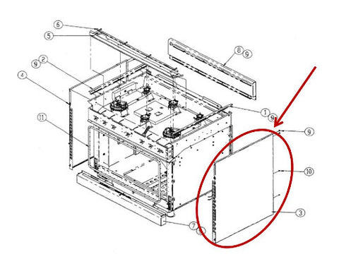 dacor right side panel assembly - 701163-02